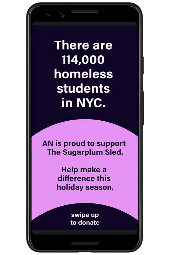 In 2019, The Sugarplum Sled’s charitable drive was organized to benefit homeless and underprivileged students. The Architect’s Newspaper sponsored the drive and I designed a series of promotional material for the cause.